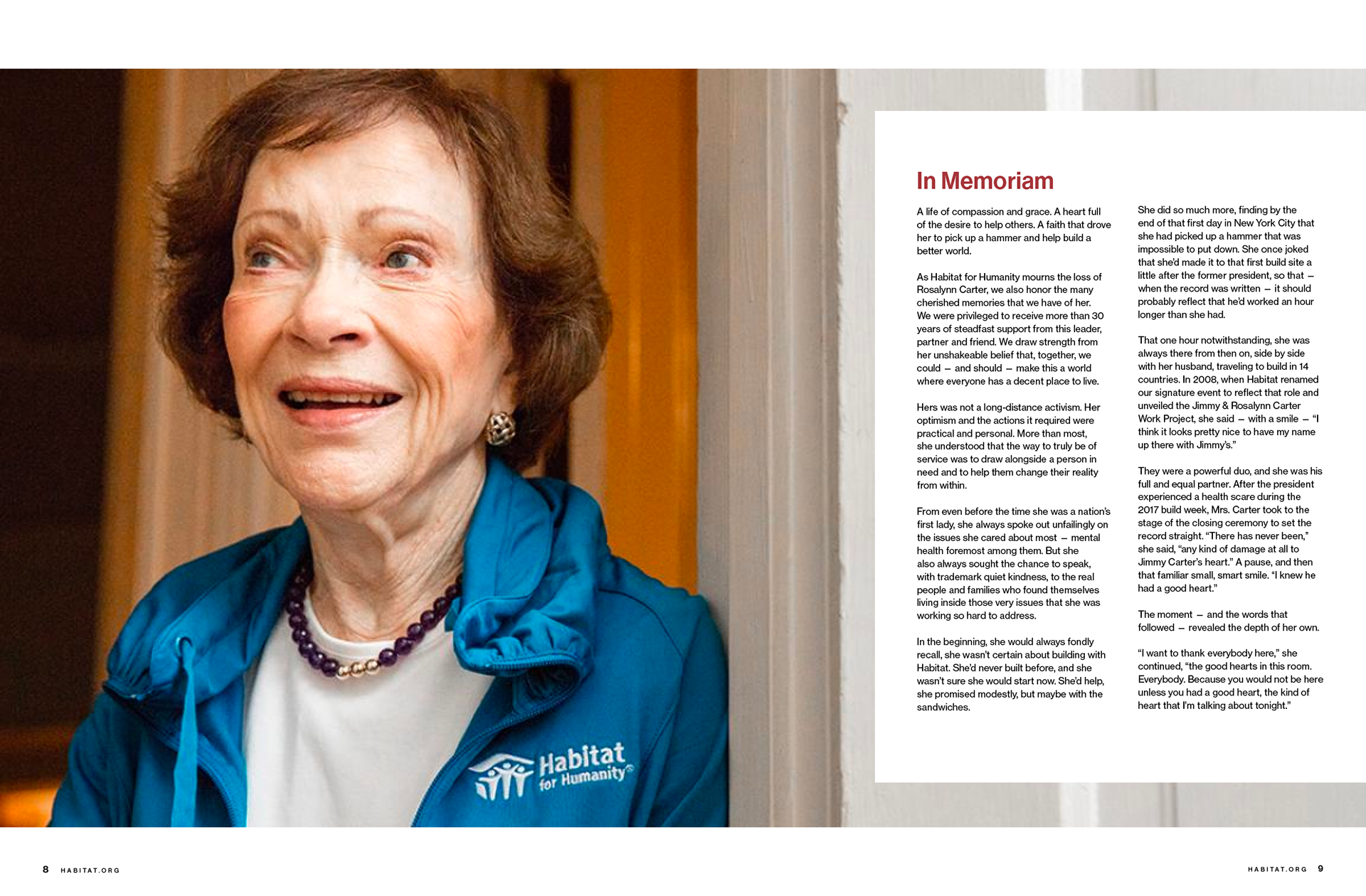 Commemorative Habitat magazine honoring President and Mrs. Carter, designed and developed to share the lasting impact this incredible couple had on the organization.