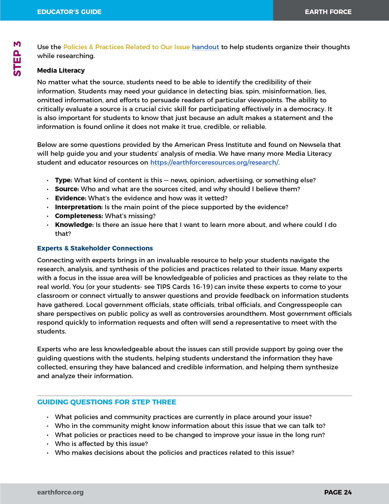 Brochure and Educator's Curriculum Guide for the environmental education focused nonprofit Earth Force
