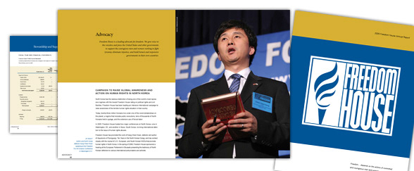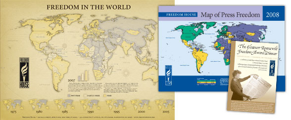 Freedom House, an independent watchdog organization dedicated to the expansion of freedom around the world, publishes an annual "Freedom in the World" report. For more than ten years, I've designed the accompanying map showing the status of freedom in our world, as well as designing special event collateral and other publications.