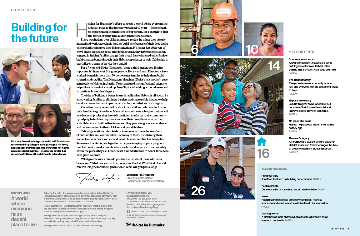 Our May, 2016 issue of Habitat, the magazine of Habitat for Humanity