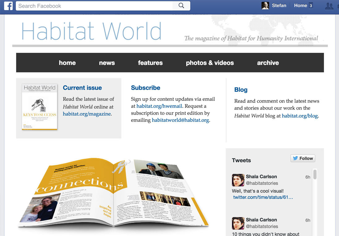 Stefan also develops images and embedded videos to feature on the organization's international website, working with development staff to create novel and content-appropriate features